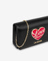 La pochette è dotata di tracolla a catena,sul davanti è presente un cuore rosso in metallo con logo.
